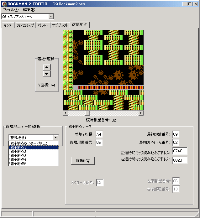 「まとめて値を自動計算」ボタン -> そのステージの復帰地点データをまとめて計算