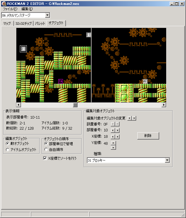 部屋単位で管理 -> オブジェクトの設置番号の計算を部屋単位で行う。オブジェクトのX座標で自動ソートが可能。